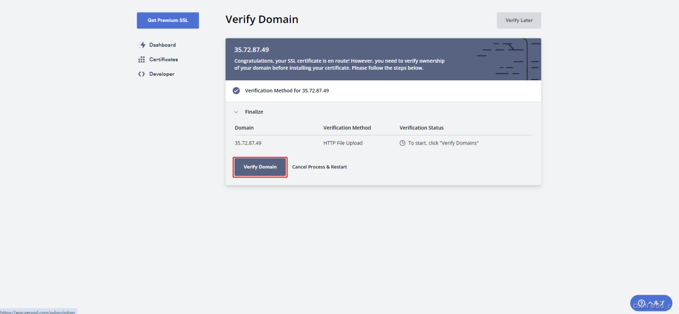 8.点击Verify Domain