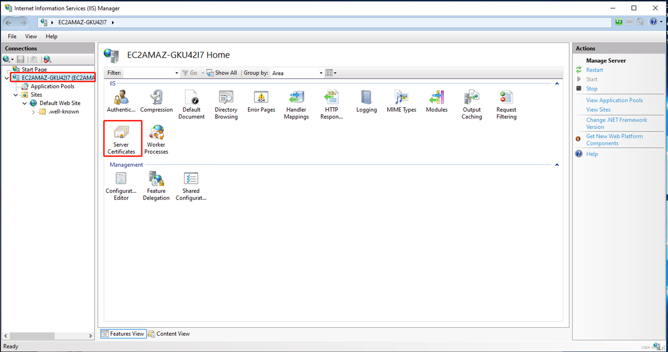 14.打开IIS管理器,双击Server Certificates