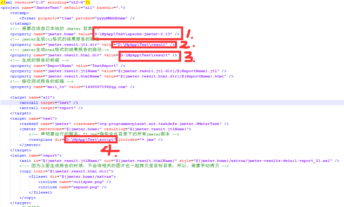在D:\test\下新建script文件夹,将jmter的测试脚本放入这里,将下图标记4的位置修改为D:\test\script