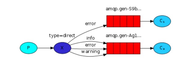 之前事例,发送消息时明确指定了某个队列并向其中发送消息,RabbitMQ还支持根据关键字发送,即:队列绑定关键字,发送者将数据关键字发送到消息Exchange,Exchange根据关键字判定应该将数据发送至指定队列。