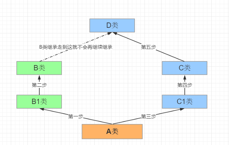 下面举个经典类的多继承的例子,方便大家理解: