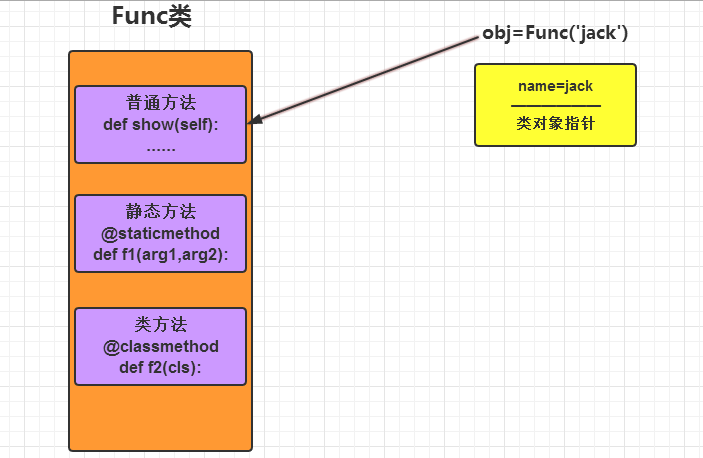 普通方法:有对象调用;至少一个self参数;执行普通方法时,自动将调用该方法的对象赋值给self;