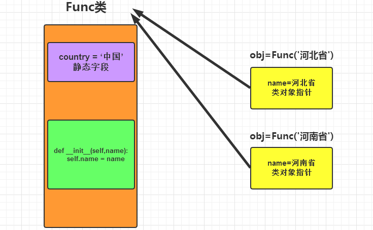 由上述代码可以看出【普通字段需要通过对象来访问】【静态字段通过类访问】,在使用上可以看出普通字段的归属是不同的。其内部的存储方式类似下图: