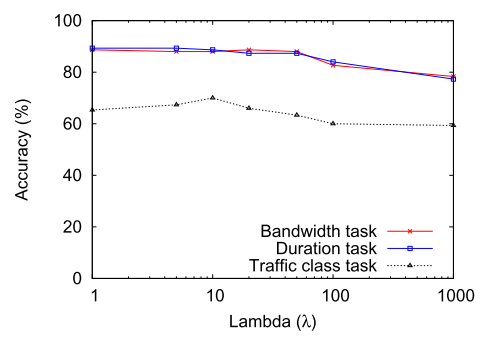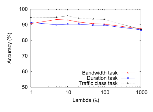 λ值作为超参数。一个好的起点是将带宽和持续时间任务的样本数与流量分类任务的样本数之比设置为