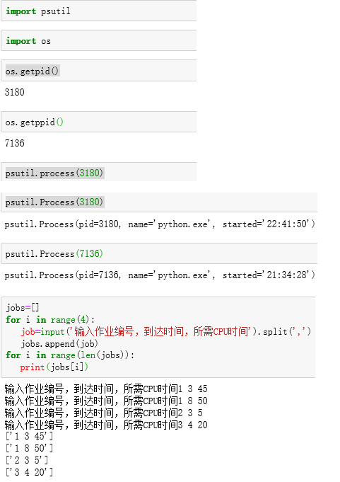 输入多个作业的作业编号,到达时间,所需CPU时间,形成列表,以备算法使用。