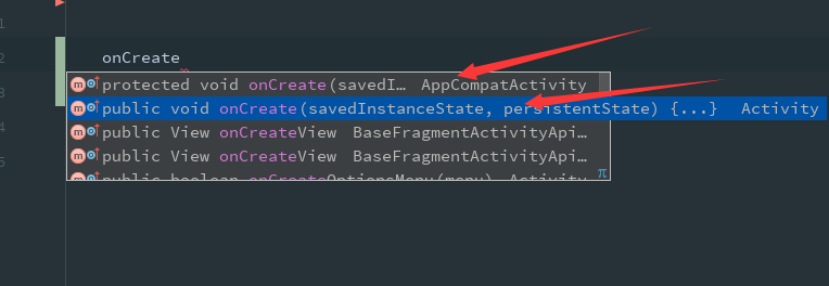 咦,这里怎么会有两个onCreate提供给我们重载?选择困难症患者表示根本选不出来。WTF?长久的经验告诉我们,我们要重载的是第一个onCreate方法,他只有一个参数也一直只有一个参数。并且用protected进行约束。