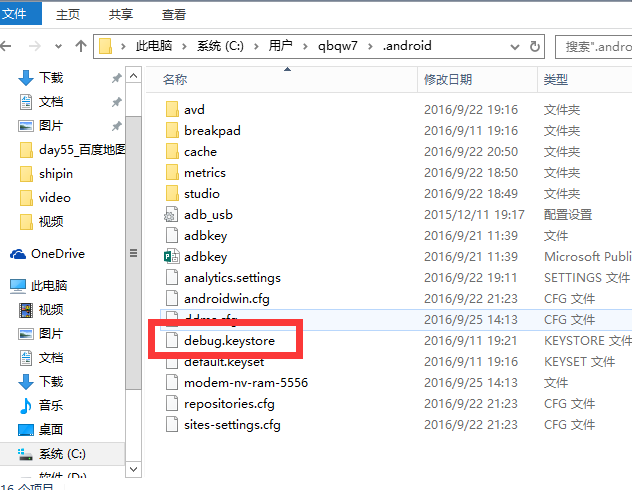 打开你的安卓ADB目录,一般在C盘的用户目录中以.android为文件名。