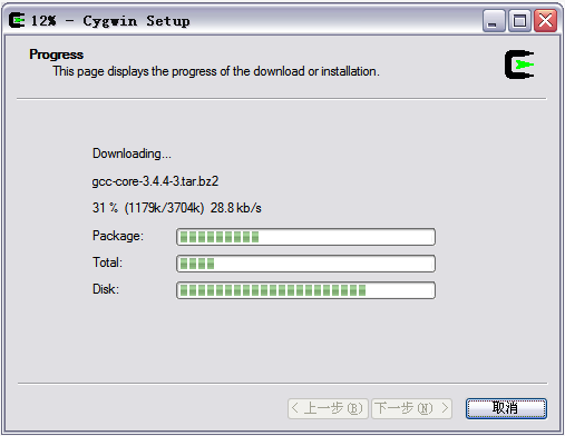 从上述三种模式中,我选择第一种安装模式,直接从网上安装,当然在下载的同时,Cygwin组件也保存到了本地,以便以后能够再次安装。选中后,点击“下一步”,