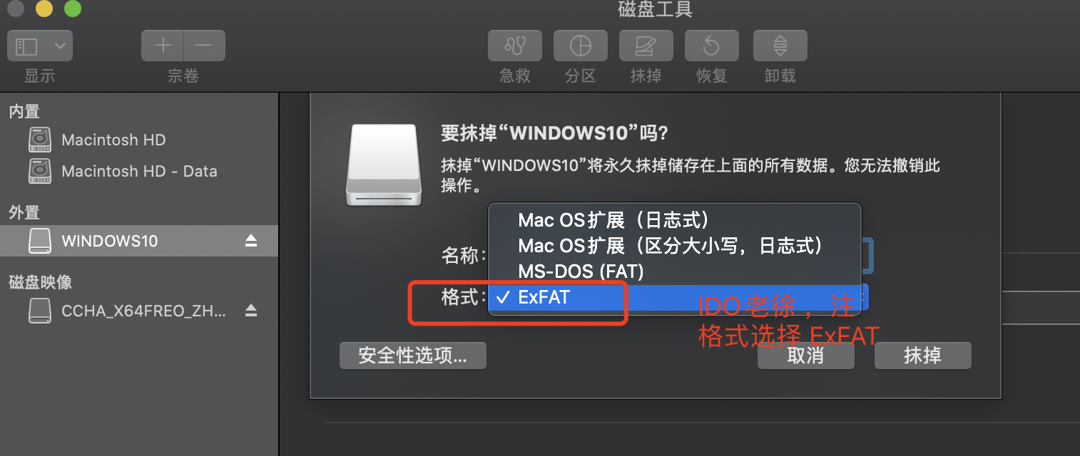 原因:FAT32 只支持3G以下文件,NTFS格式:mac不支持,我们选择exFAT 格式