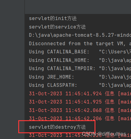 当我们停止服务器就会销毁servlet