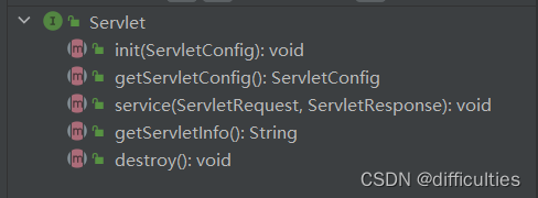 第一步,在自定义类中实现Servlet接口,这里实现servlet接口哦~