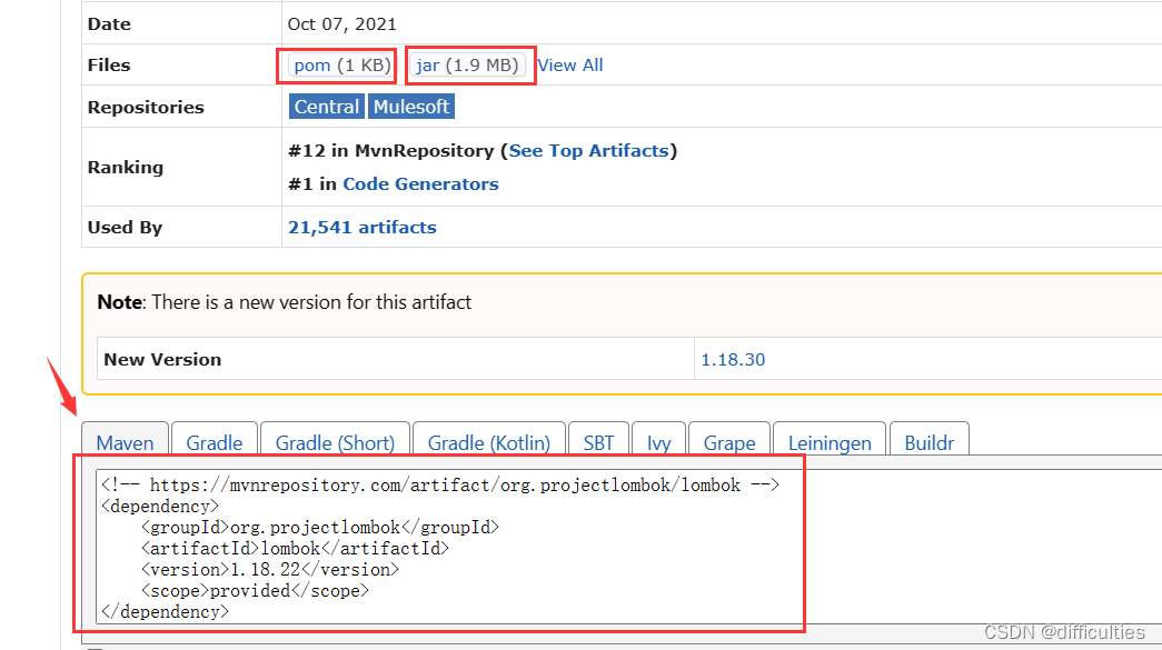 然后点击自己所需要的版本。因为我们是构建maven的项目,所以就用下面用红色圈起来的depenency,当然,你也可以用Gradle等等,也可以直接下载jar包来使用。