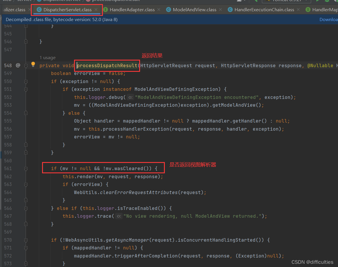 8.如果ModelAndView不为空,那么前端控制器将模型视图传给视图解析器(ViewReslover)