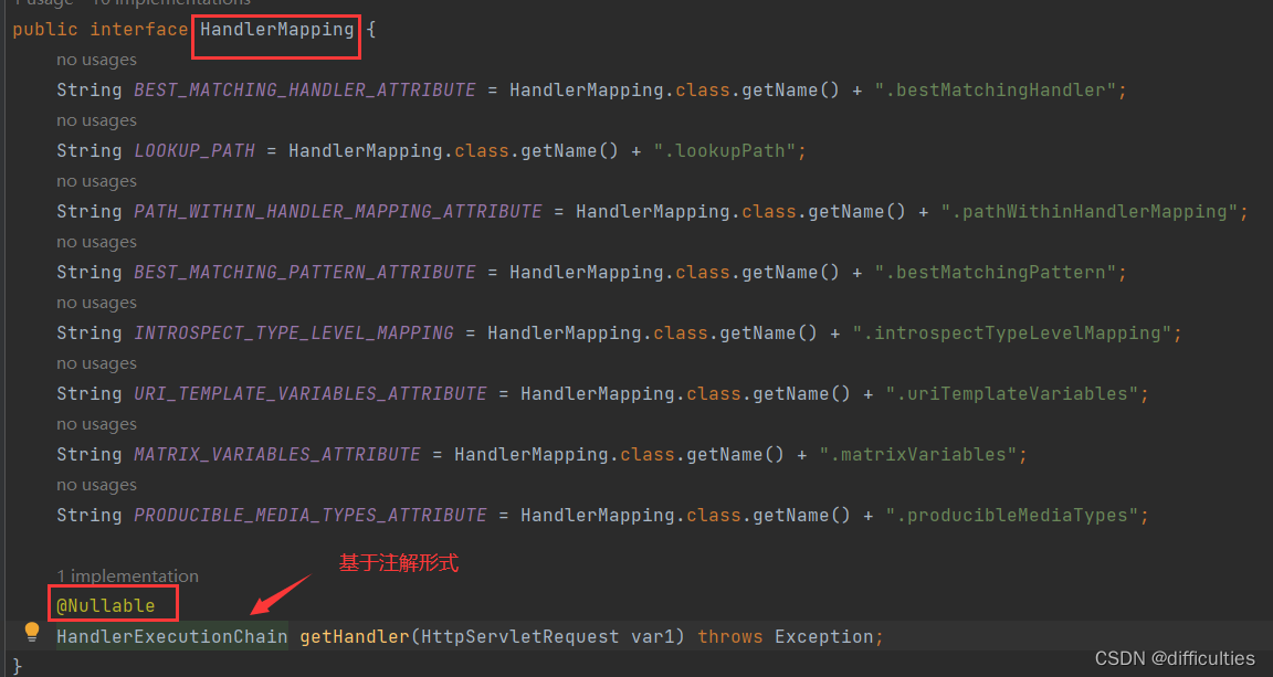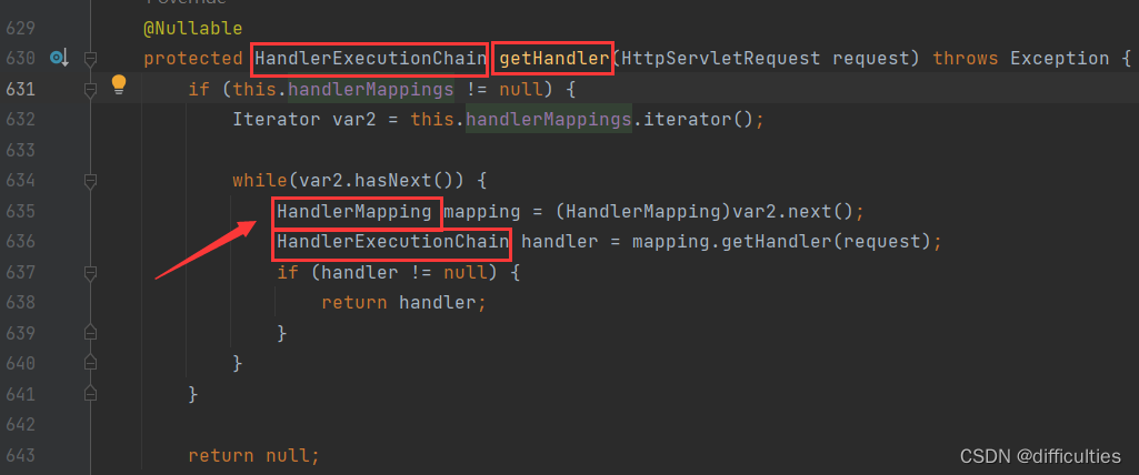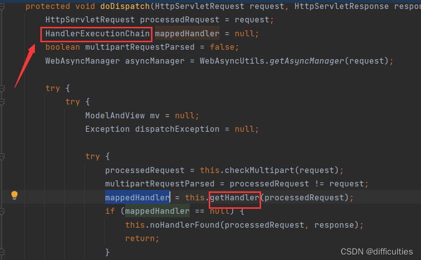 2.前端控制器获取请求后,就会调用doDispatch方法里的getHandler。