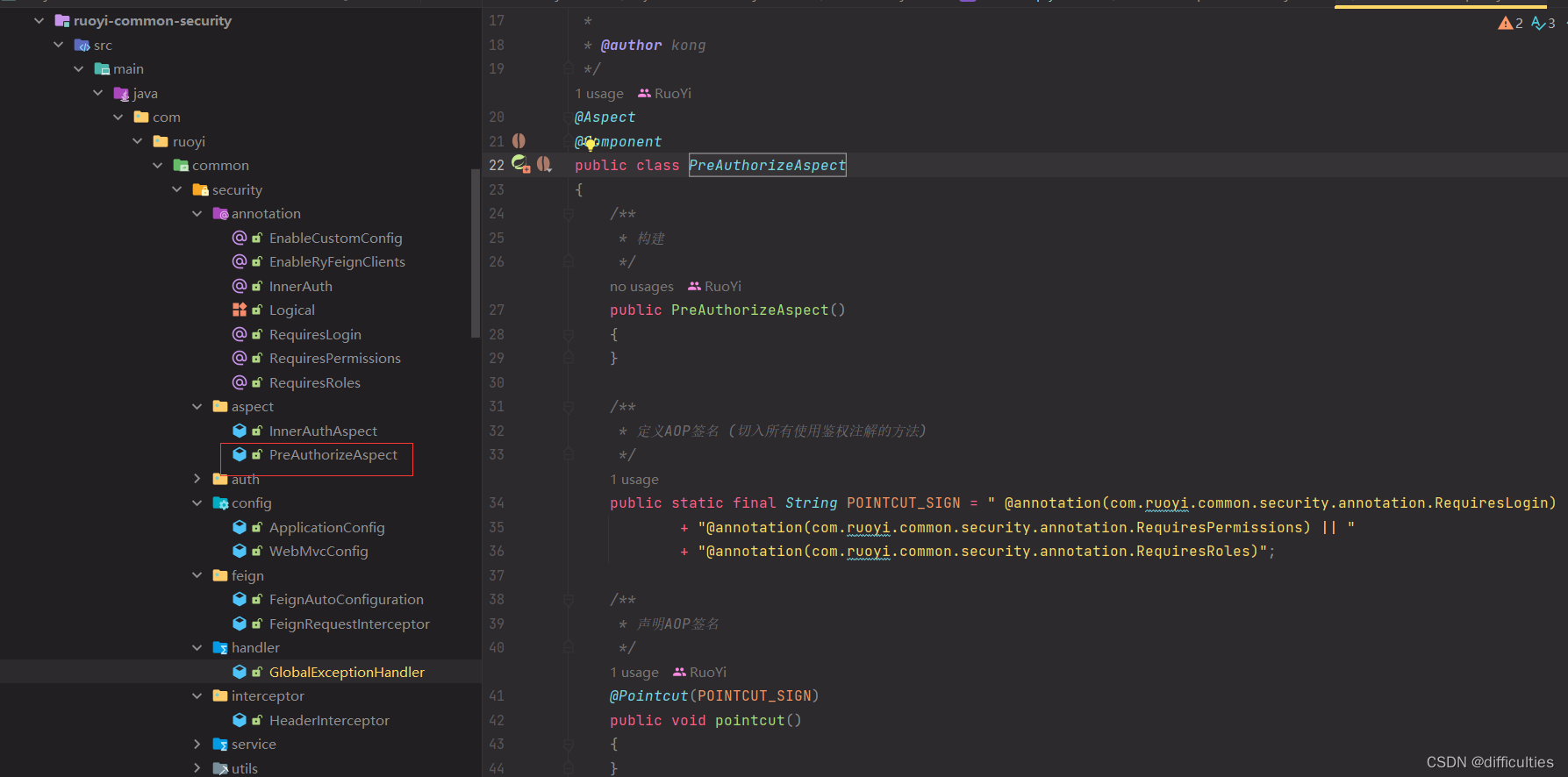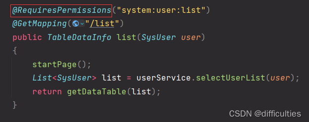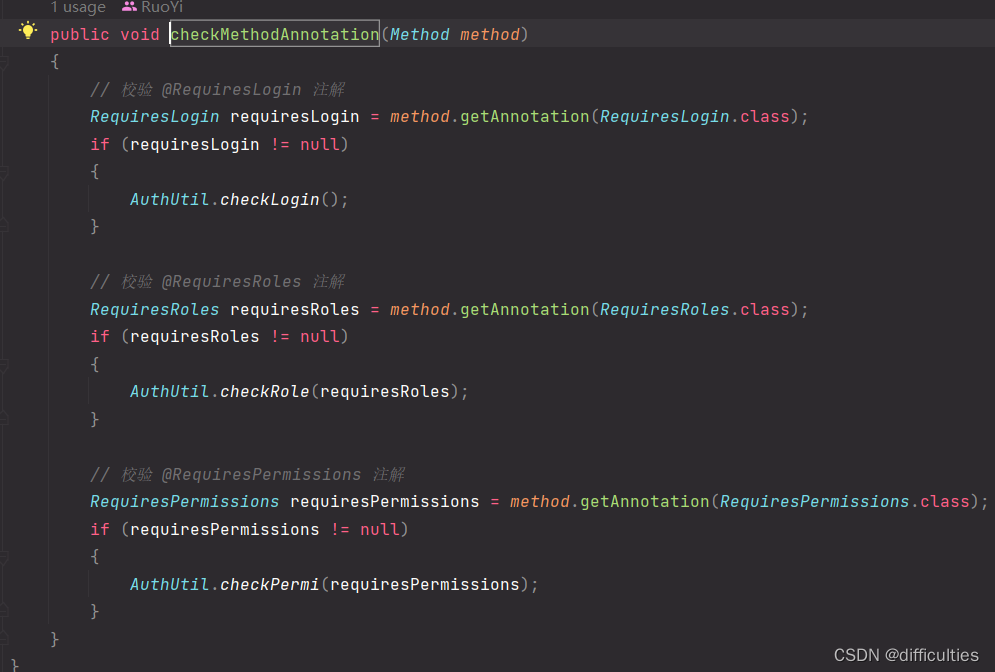 然后前面是判断有没有token,然后后面就是判断是否有权限。做一個面向切面的方法增强。只要控制层方法上有注解是满足aop的签名就可以进行通过。