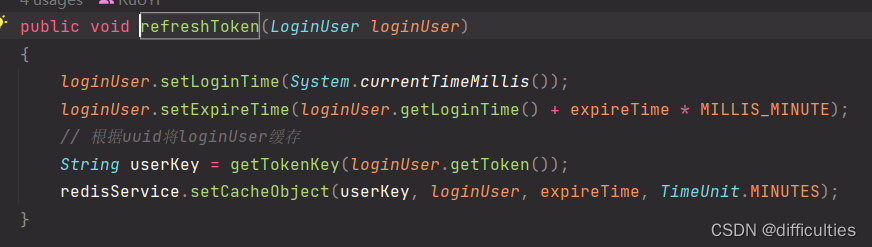 refreshtoken这个方法简单来说就是设置过期事件,将他存入redis缓存中。