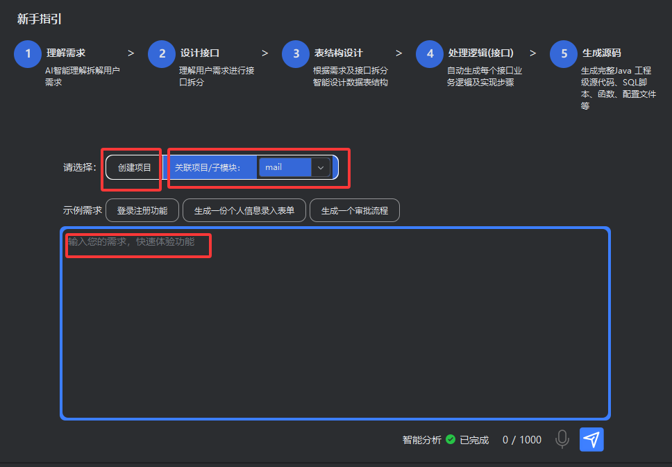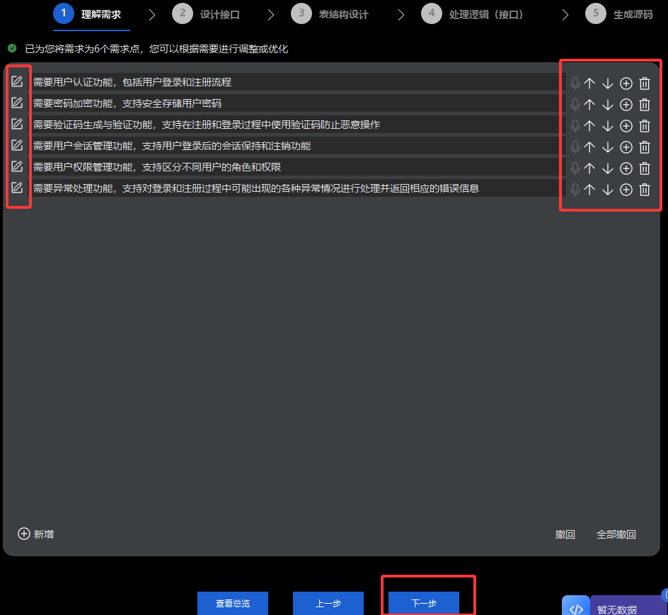 红色部分可以按照自己的想法进行修改,他第一版会按照整体需求来生成的,可能会与你的想法有不同地方。