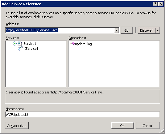 WCFUpdateList.Service1Client myWCFProxy = new WCFUpdateList.Service1Client();