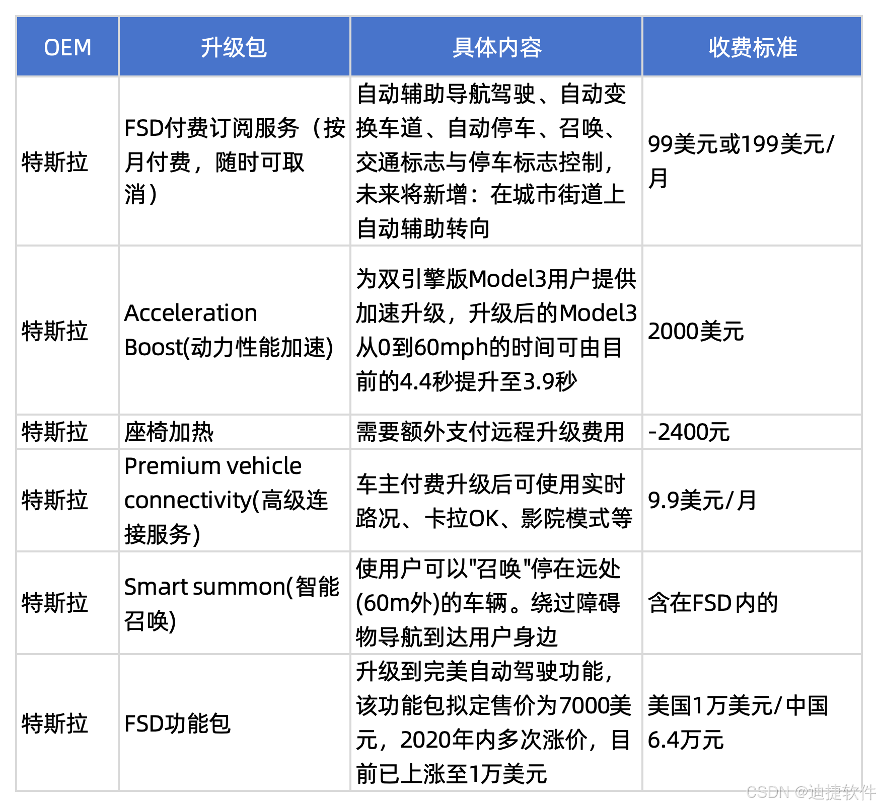 随着软件定义汽车的不断演进,整个汽车行业的商业模式随之改变,从长期以来依赖新车制造和销售获取利润,转向规模更大的软件×保有量市场收费。整车厂将通过向C端收取软件授权和OTA更新服务费以完成商业模式闭环。