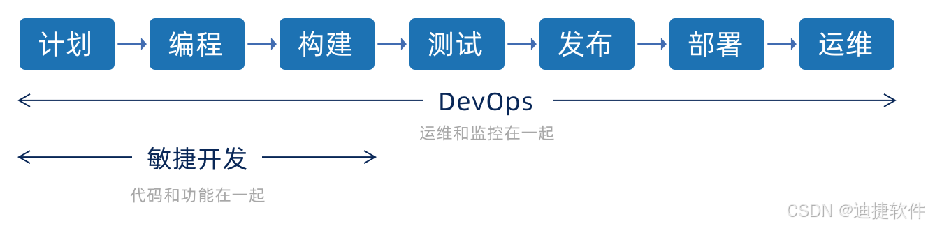 敏捷通过流程管理手段,应用一些理论框架(比如Scrum、Kanban),主要解决业务部门和开发部门之间的矛盾点,让双方能够进行快速沟通,达成高效协作。而DevOps主要通过一些工程实践方法,结合自动化工具,解决开发、测试、运维部门之间的矛盾,使产品功能能够快速、稳定的上线运行。
