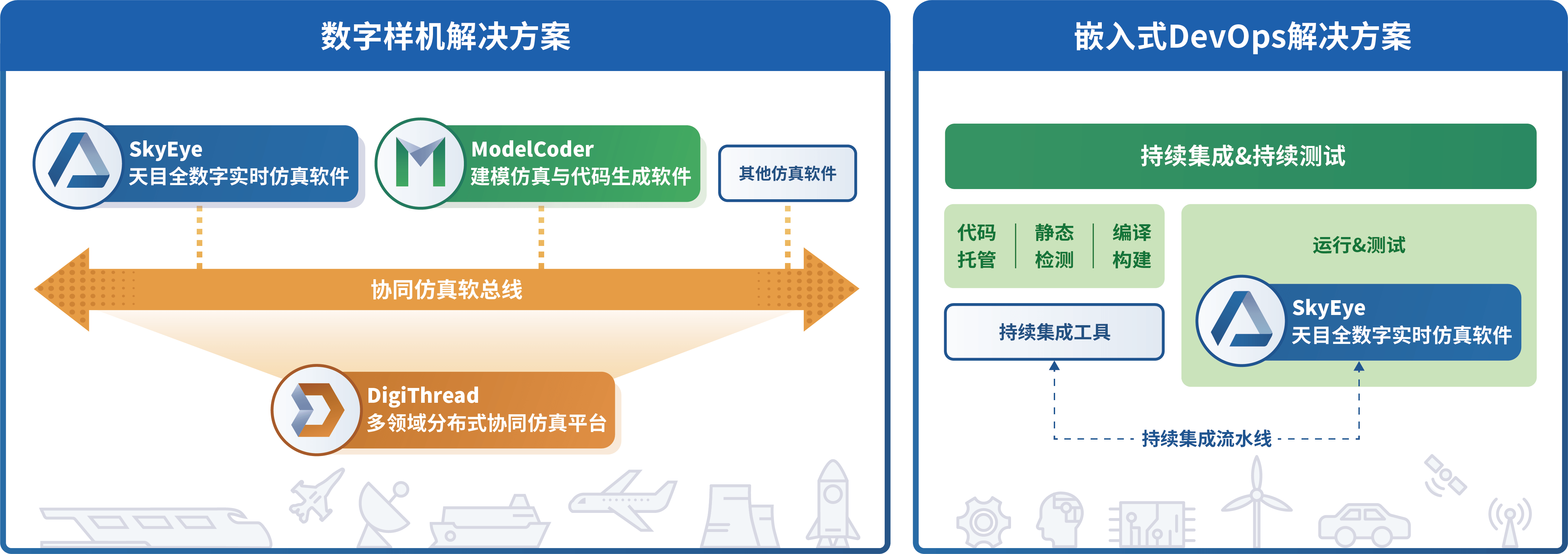 经过近20年在研发和产品创新体系上的下沉和深耕,迪捷软件推出了自主创新、自主设计、自主可控、自主知识产权的一系列嵌入式DevOps与MBSE仿真建模产品:天目全数字实时仿真软件SkyEye、建模仿真与代码生成软件ModelCoder、多领域分布式协同仿真平台DigiThread,及嵌入式DevOps解决方案和数字样机解决方案,涉及了高端装备的需求、设计、开发直至仿真测试等环节,已成功应用于我国C919、飞机发动机、载人航天、火星探测器、核电站、汽车、轨交等领域,提供了基于计算机的高效设计开发环境,解决了高端装备软件开发和测试时硬件环境搭建成本高、资源调度难、研发周期长等问题,填补了国内嵌入式虚拟仿真领域空白。