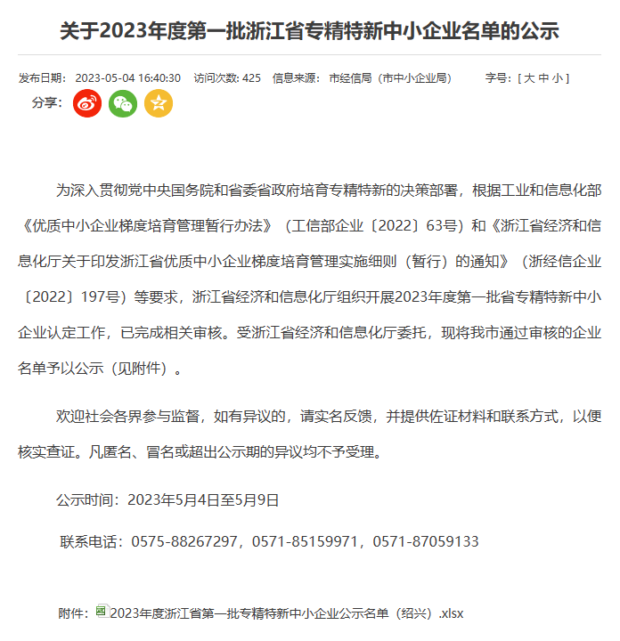 近日,根据工业和信息化部《优质中小企业梯度培育管理暂行办法》(工信部企业〔2022〕63号)和《浙江省经济和信息化厅关于印发浙江省优质中小企业梯度培育管理实施细则(暂行)的通知》(浙经信企业〔2022〕197号)等要求,2023年度第一批浙江省专精特新中小企业名单正式公示,迪捷软件成功获评2023年度第一批浙江省“专精特新”中小企业。