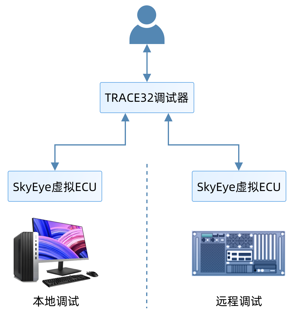 当前汽车行业对仿真的应用主要集中在对汽车ECU,也就是“行车大脑”的虚拟仿真。下文将介绍应用于汽车ECU的基于天目全数字实时仿真软件SkyEye的TRACE32调试,SkyEye负责提供汽车虚拟ECU的搭建平台,结合TRACE32即可实现嵌入式仿真调试。