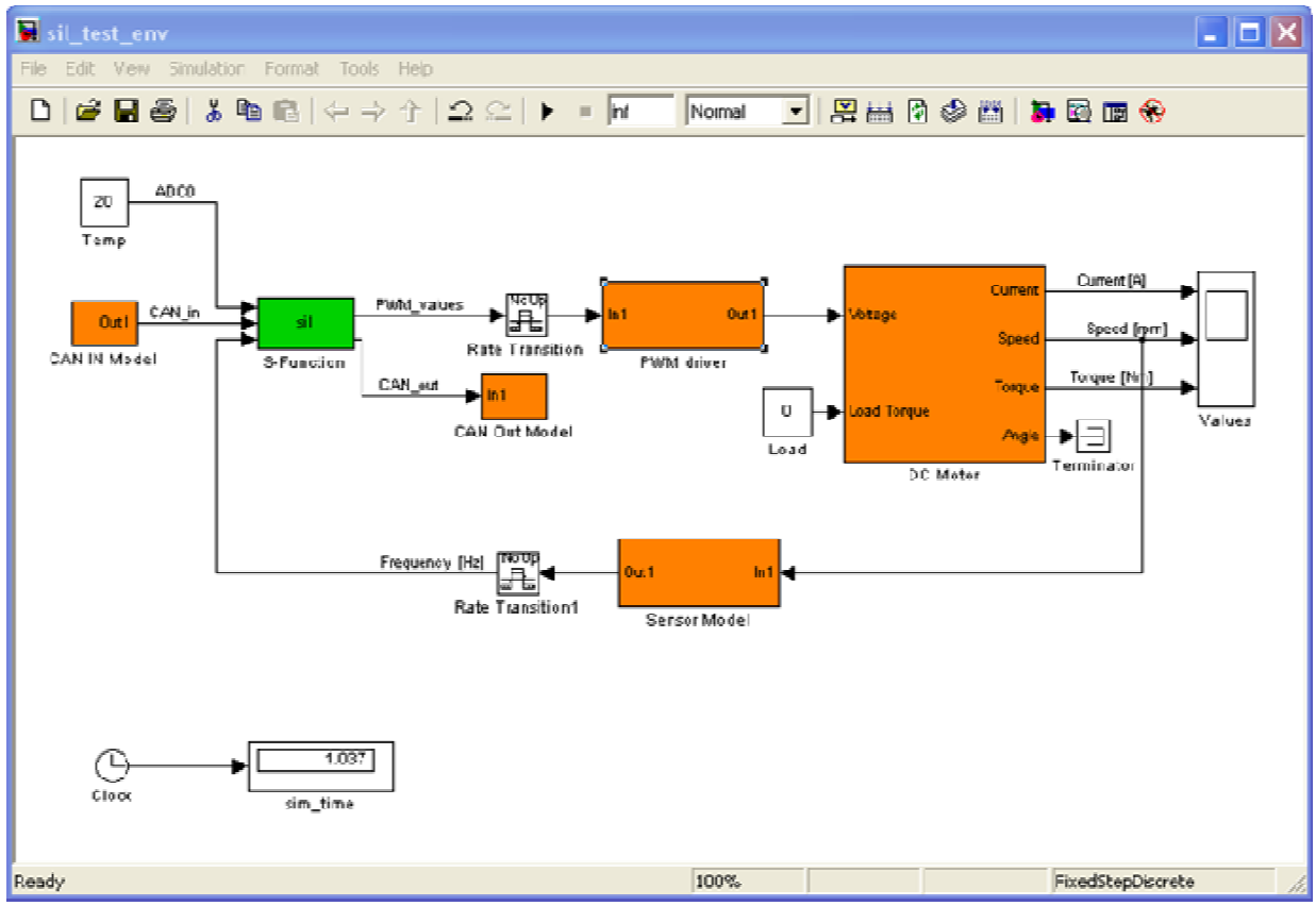 - 仿真操作系统、底层驱动程序、XCP和S函数与MATLAB/Simulink模型中的直流电机模型形成闭环。