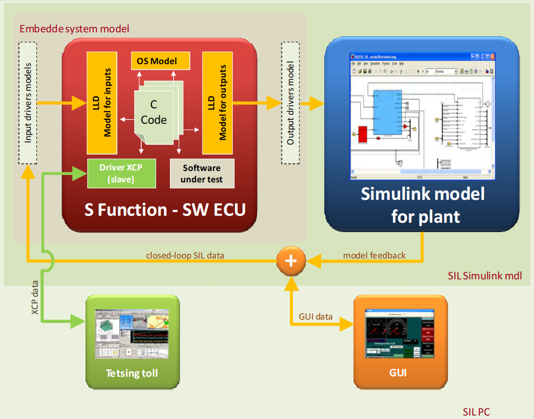- OSEK实时操作系统、被测控制算法代码和XCP模块一起封装成一个S函数。