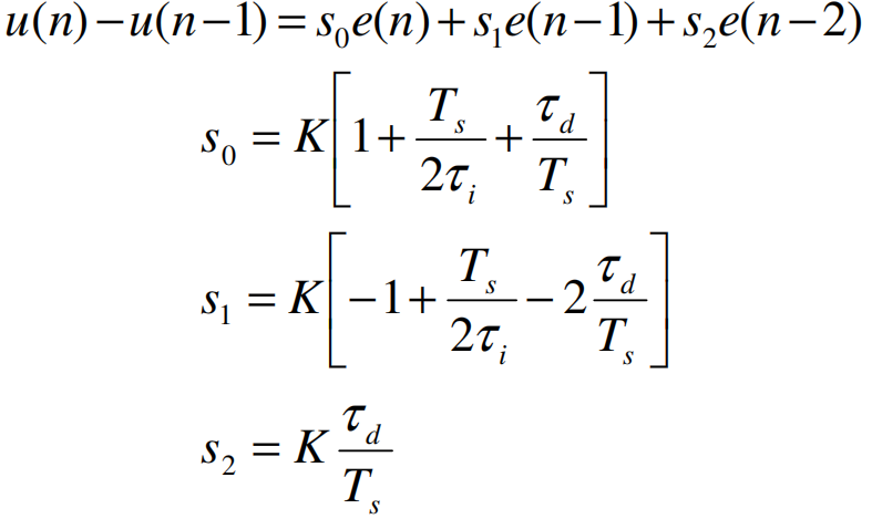 其中,K是比例常数,τi是积分常数,τd是导数常数,Ts是采样周期。