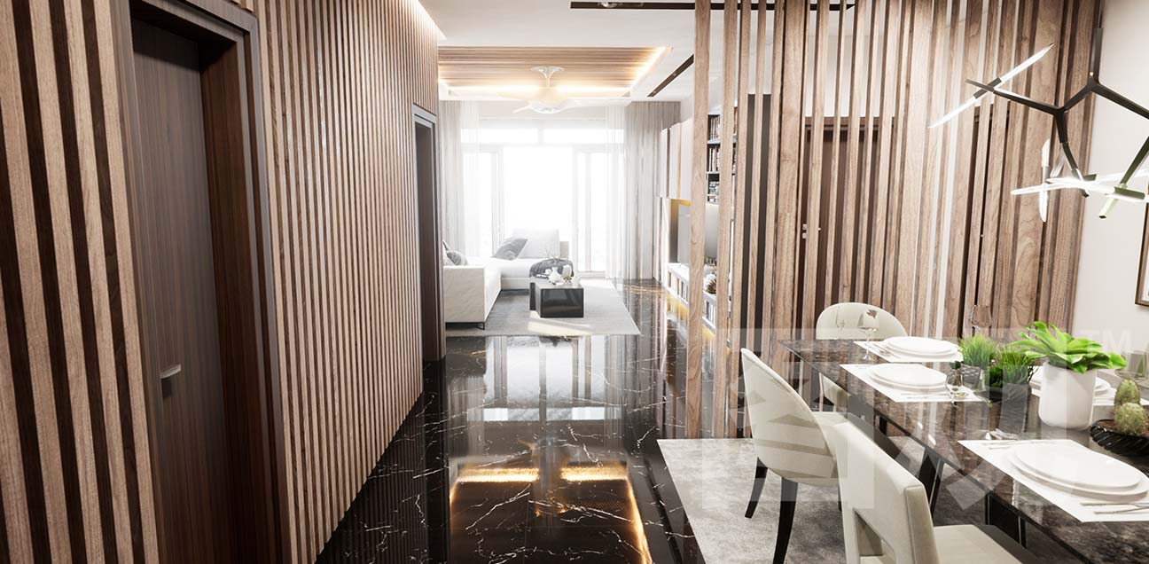 以 高拟真模型 形式,高逼真还原房间户型结构、室内装潢、详细陈设摆放(门窗、家具、设备设施、软装等),以真实视景效果表现的建筑内部 纹理细节粒度的状态,位置、数据分布等 业务要素。