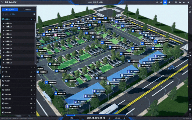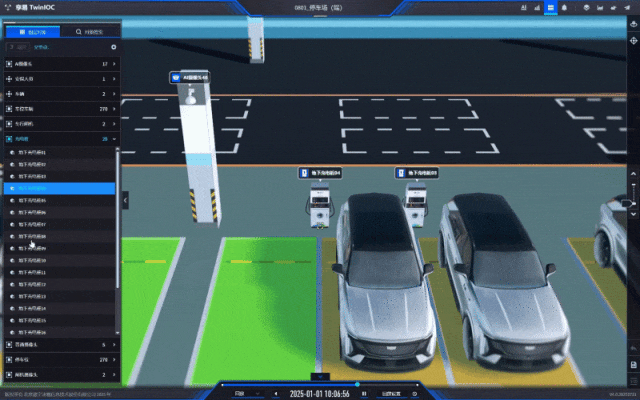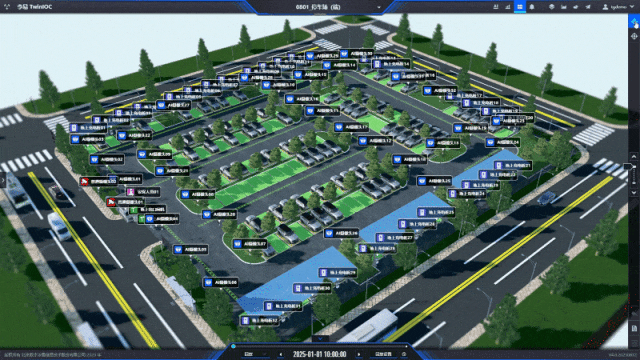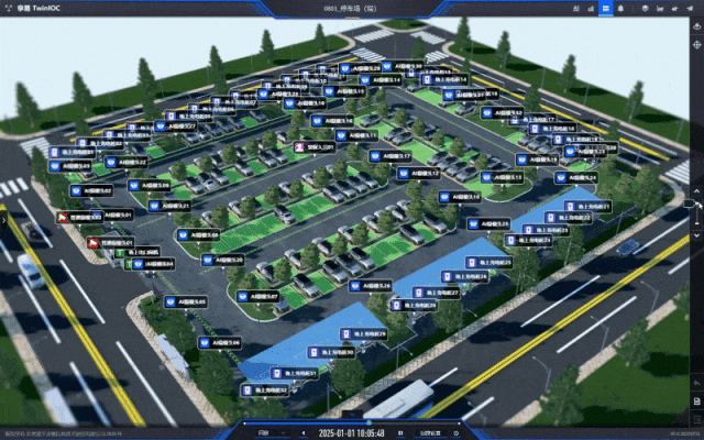 基于孪易IOC构建的停车场数字孪生应用,通过地上/地下双层三维场景复现、车位状态实时映射、远程设备控制、智能数据分析等核心能力,让停车场的每一个车位、每一台设备、每一次车辆进出都变得 "可视、可管、可控",实现停车管理从“被动响应”到“主动管控”的跨越。