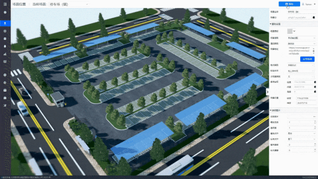1.高保真场景构建: 图观 场景编辑器 是构建地上地下停车场三维世界的利器。它能够快速搭建包含精确车位布局、复杂车道流向、关键设施的高仿真三维场景,为孪生应用提供沉浸式、高精度的空间。