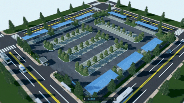 3.车位状态秒级感知:停车位均以不同颜色清晰标识其使用状态:绿色代表车位空闲,黄色代表车位占用,可在三维场景中全局俯瞰,瞬间识别空闲车位分布。