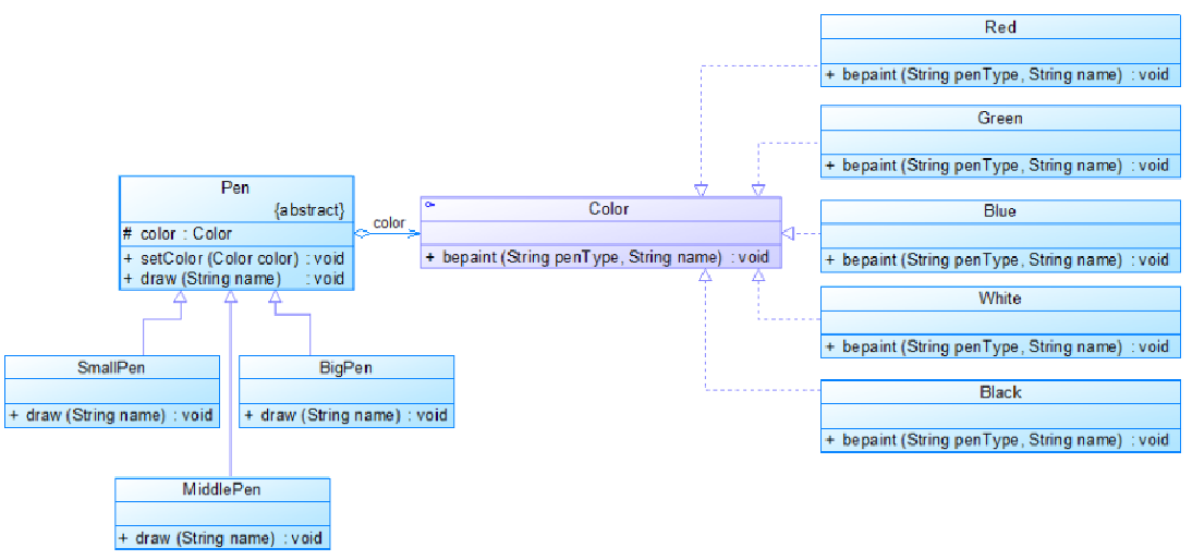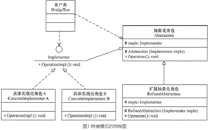- 在桥接模式中,Abstraction通过聚合的方式引用Implementor。