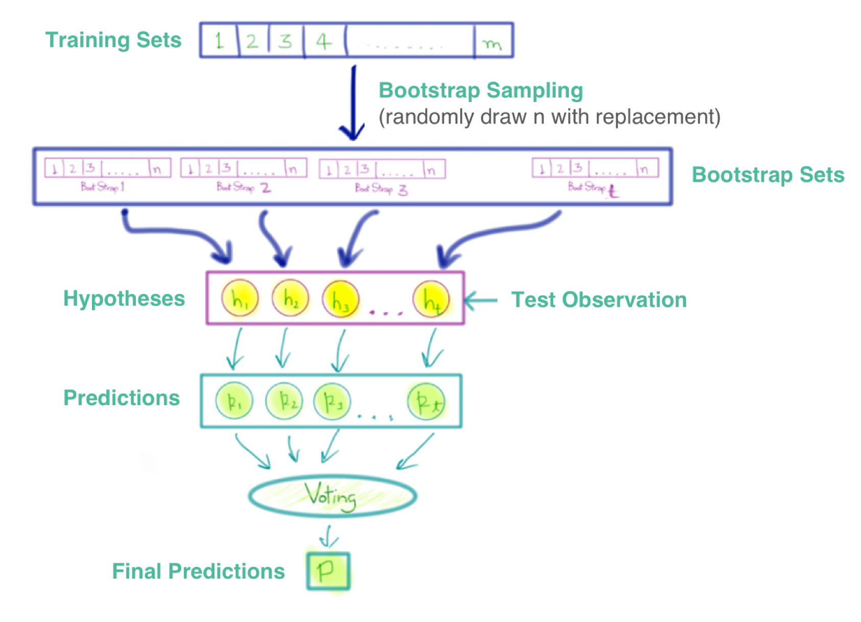 3)n个决策树分别进行预测,然后投票决定最终结果