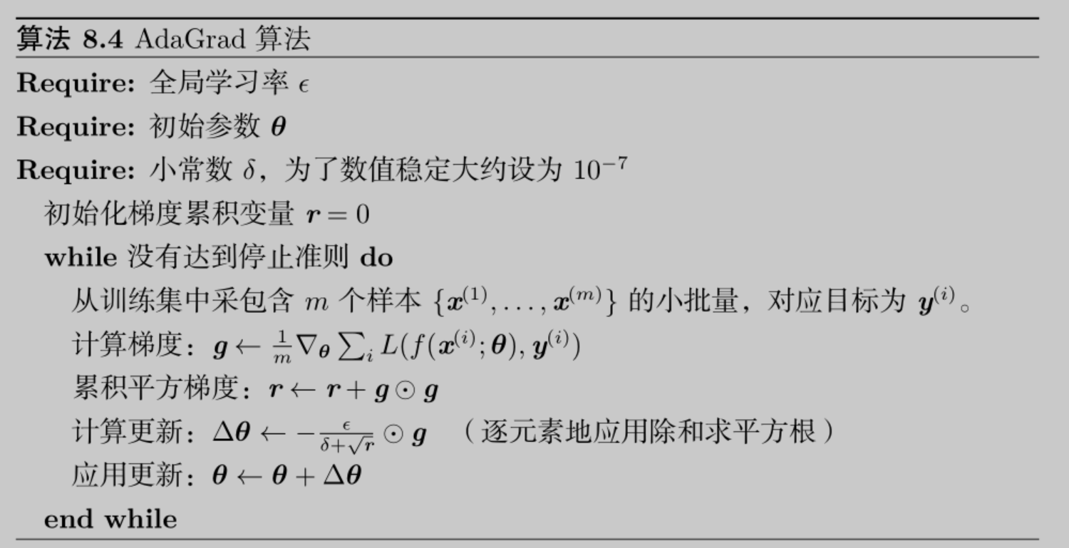 $\theta_i $的表达式:$\theta_i = \theta_i - {\epsilon \over \delta + \sqrt r} * g_{i-1}$