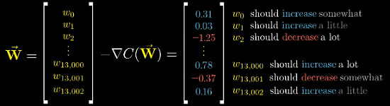 - 正负号在告诉输入向量应该调大还是调小(正调大,负调小)