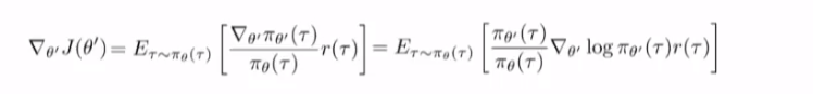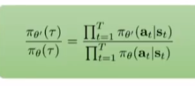 的分布决定。 至此,算法变为了off-policy, 即通过不是该策略产生的数据来训练参数。通过等式可以看出,要通过importance ratio 进行调整。其中 :