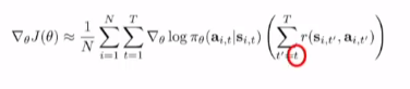 由于某个时刻 前面的reward 对现在时刻的微分没有影响,所以 变为: