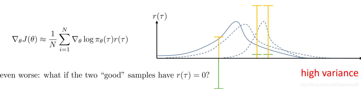 接下来又分析了 vanila policy gradient 方法 的 high varience :