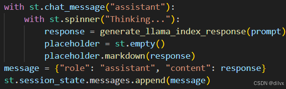 streamlit app 给出了一个 RAG web 应用的 demo,将 query_engine 保存在 session 中,通过 generate_llama_index_rsp 函数调用,之后展示到前端。