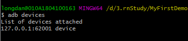 - react-native init 项目名称 初始化一个项目 使用adb devices查看连接的设备