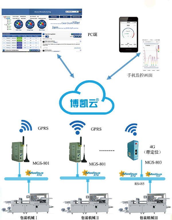 针对中国包装机械行业存在的技术含量低、效率不高和售后服务问题,项目需求聚焦于实现设备的实时运行监控,支持异常报警、诊断和预测性维护。通过MGS-801/MGS-803硬件接入与博云控B/S系统,可在同一平台上管理多设备并地图化显示设备状态,以优化设备效率和服务质量。