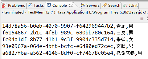 40 stmt.executeUpdate("INSERT INTO USER_INFO VALUES('" + UUID.randomUUID()+ "','白虎','男')");