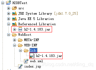 创建一个【H2DBTest】JavaWeb项目,找到H2数据库的jar文件,如下图所示: