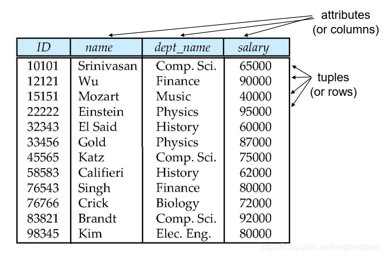 关系数据库由表的集合构成,每个表都有唯一的名字。