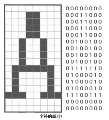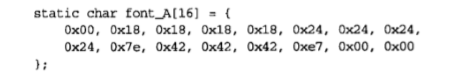 作者使用8x16 的矩阵来表示一个字符, 不知道真正的字体文件*.ttf是否用这样的方式储存…