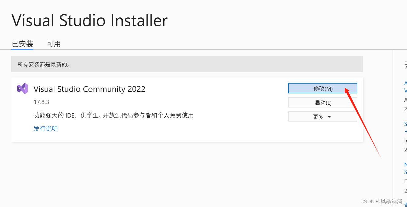 点击开始菜单中->“所有程序“-> Visual Studio Installer”,启动VS安装程序;