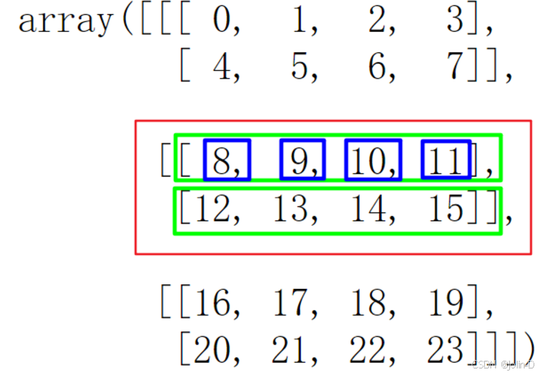 以a=np.arange(24).reshape((2,3,4))为例说明: